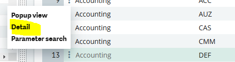 - Left-click on the ellipsis (three vertical dots) in that same line next to "Accounting." Three options should show up: Popup view, Detail, and Parameter search. Select "Detail."