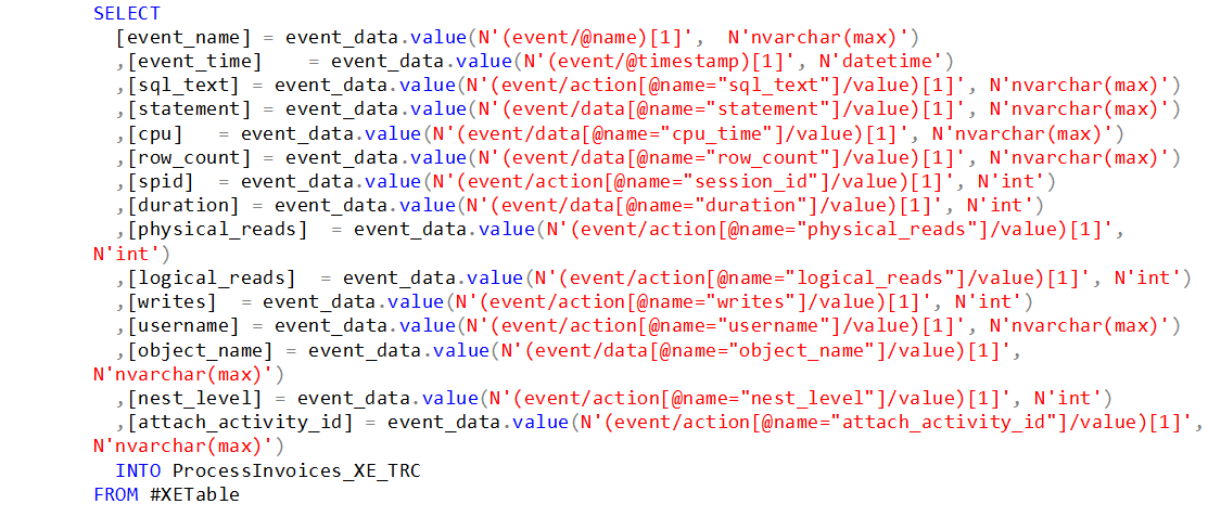 Extract the XE data from the event file and load it into a SQL table