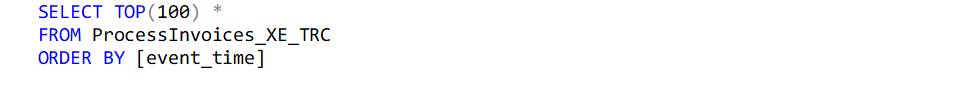 2. Verify the XML data was read into the table and review the structure of the extended events, as each event type might have slightly different data fields or attributes. You will run a SELECT statement to see the data that is in the temp table.