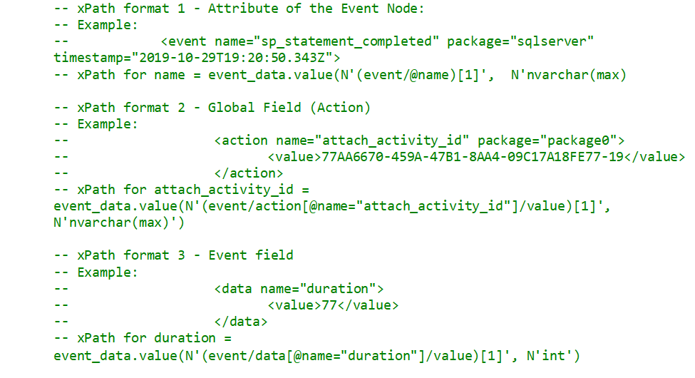 I generally will copy the Extended Events file from the production server to an alternate server to process the data. The shredding that I’ve conducted will be very CPU intensive, and I don’t want to impact production. The process to get the data into a table is pretty straight forward. I’ve placed some detailed information below on how to configure the shredding of the xml. This is optional reading and work. The script to shred that I’ve provided in step 2 is pretty good, I generally use it universally in all environments that I work in.