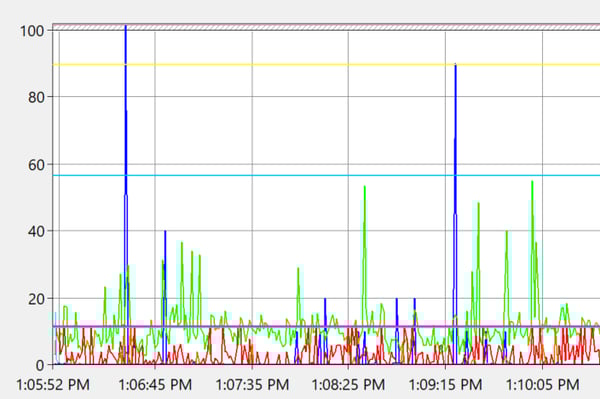 The report option is useful as it shows all the numerical values for all the selected counters. This can be really helpful when you have a lot of counters that you understand at the same time. One nice thing with report view is that you don’t have to worry about adjusting scaling as you do on the line view.