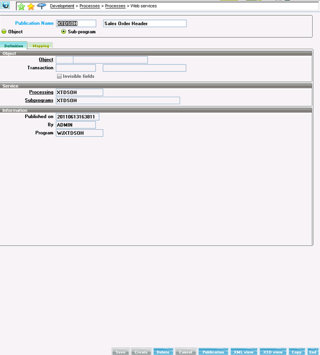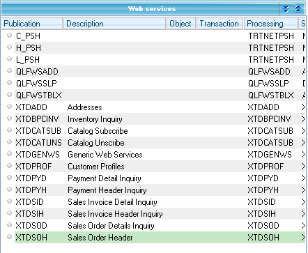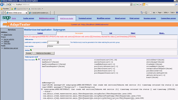 Click on the Sub program link, key in one of the Web Services to consume. I have entered XTDSOH below, click on the "WebService Description" button. This should contain valid information in the Reply as shown below.