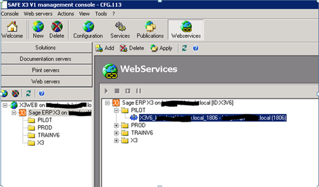 On the Server running the X3 Console - Launch the SAGE X3 V1 Management Console and click on Web Servers section.