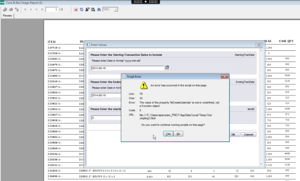 Recently, a customer reported an issue where they could not run a crystal report and click the calendar lookup for date parameters. They encountered a Script Error that halted their progress and reached out for assistance. As experts, we delved into the problem and found a solution that could be helpful to others facing similar issues.