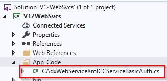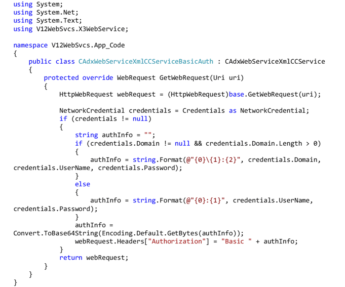 1. Create a class called CAdxWebServiceXmlCCServiceBasicAuth.cs, as shown below.
