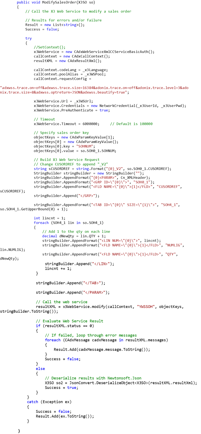- Below is the full code. This function updates an existing sales order using the SOH object.