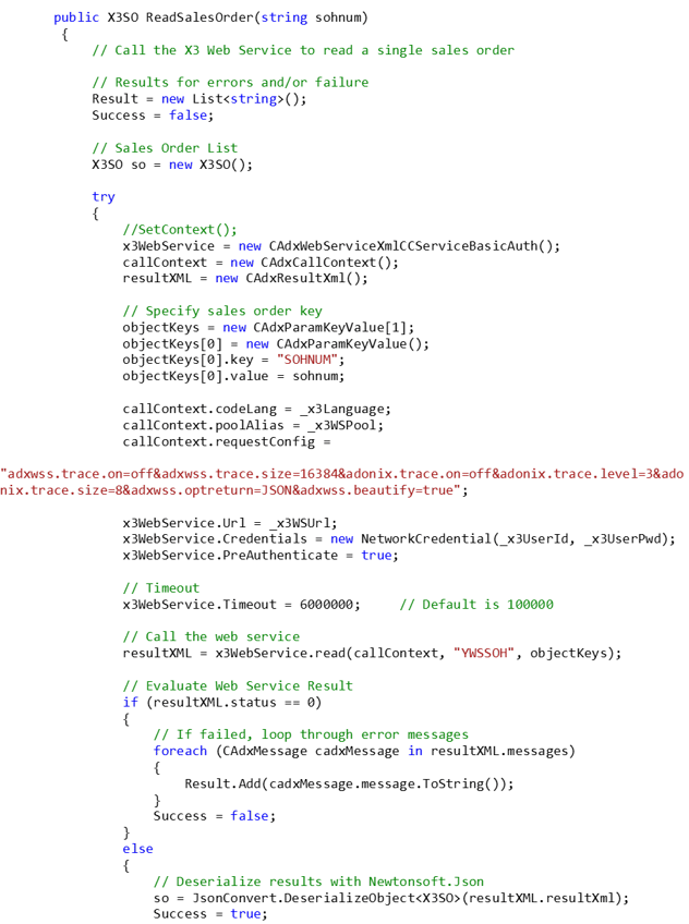 4. Below is the full code. This function reads a sales order using the SOH object.
