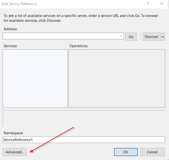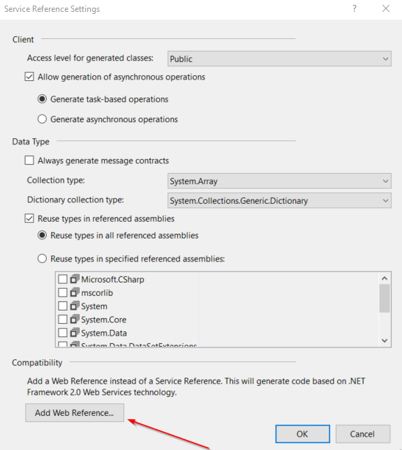 6. From the “Service Reference Settings” window, click the “Add Web Reference” button.