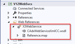 10. The X3 Web Service wsdl will now be in the .Net solution, as shown below.