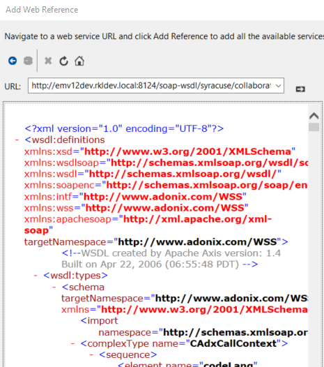 8. The wsdl definitions will appear in the box. If this does not appear, the wsdl URL is incorrect or inaccessible.