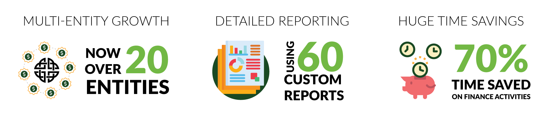 In our client base, RKL has growing entertainment organizations with entity counts ranging from a few to close to 100! In every case, the response from our clients to Sage Intacct’s multi-entity management capabilities is overwhelmingly favorable. Top benefits include improvements in:
