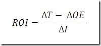 ROI (return on investment) = (delta-T - delta-OE) / delta-I
