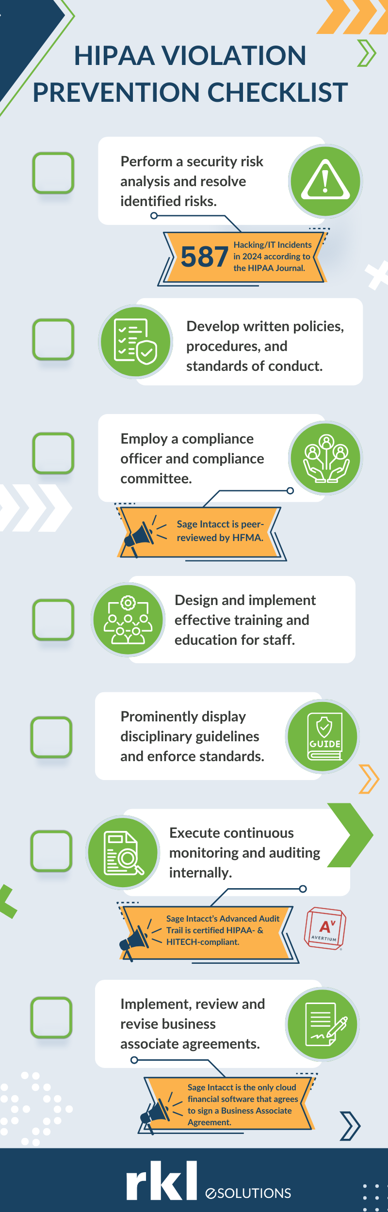 Learn more about what RKL has to offer with HIPPA compliance prevention including our prevention checklist that can help you identify potential risks and steps you can take to prevent future violations.