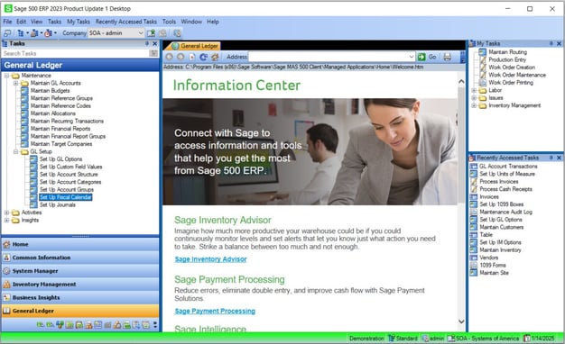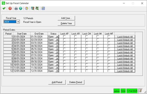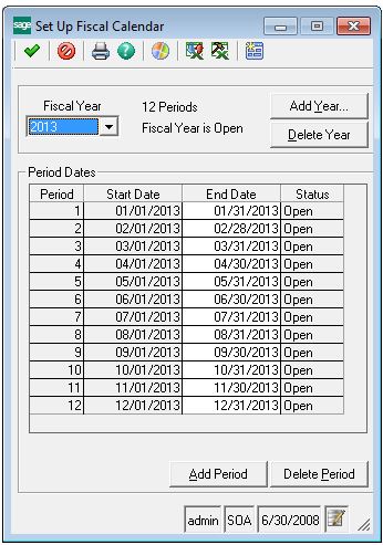 Log into Sage 500 ERP and access the General LedgerMaintenanceGL Setup Set Up Fiscal Calendar