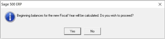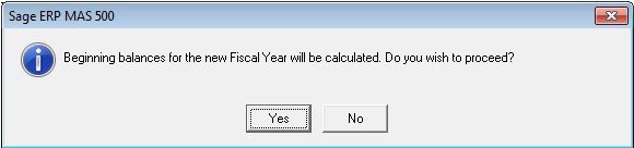 Answer Yes to the prompt to calculate beginning balances for the new Fiscal Year