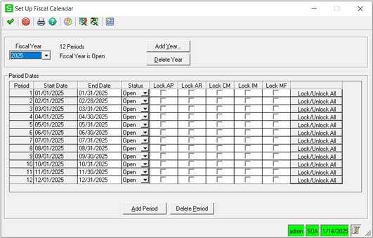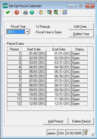 Verify the period dates are correct and make any necessary changes. Your new fiscal year is now created