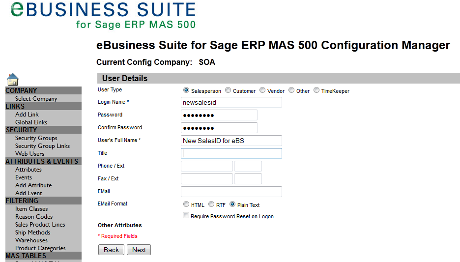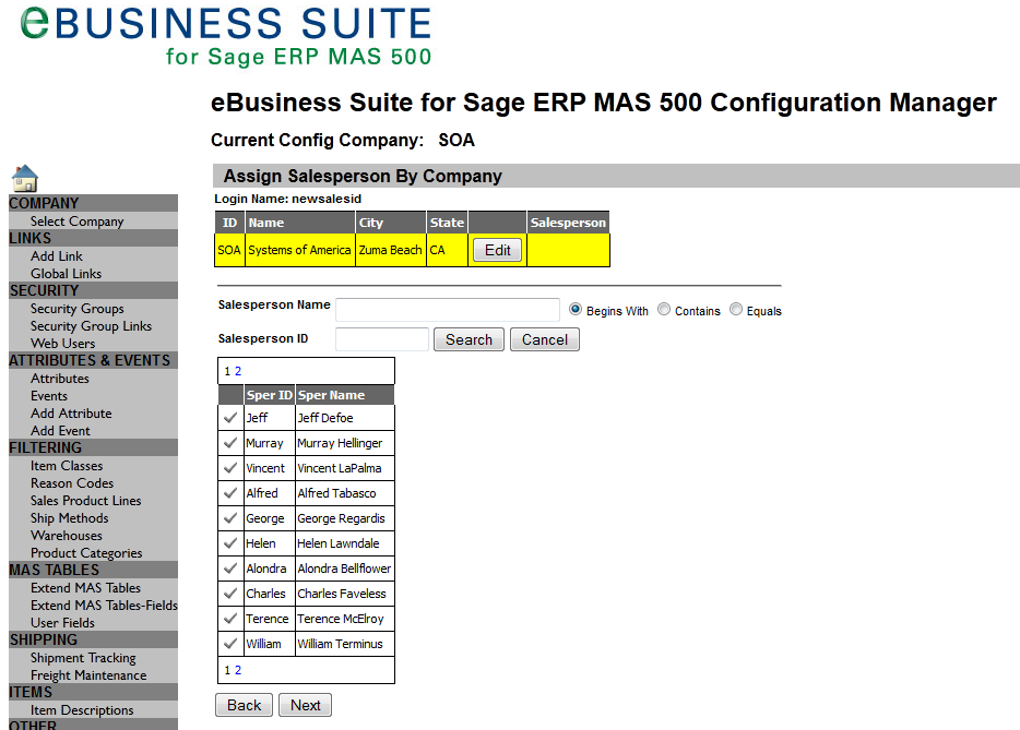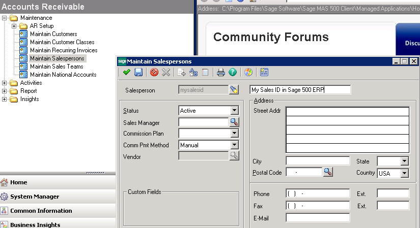 There has been some confusion regarding the how to add new salespeople to eBusiness Suite for Sage 500 (formerly MAS 500). So I am outlining this process here to provide a tutorial and hopefully eliminate future confusion.