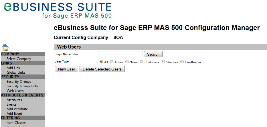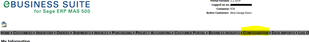 Login into eBusiness Suite for Sage 500 ERP as an Admin level user. You will need to have access to the Configuration module.
