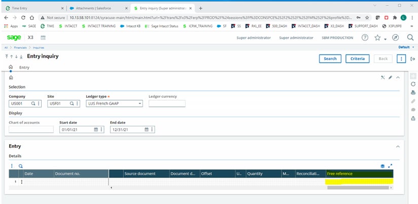 The Entries Inquiry is an indispensable tool for any business that wants to stay on top of its financial transactions. With this feature, you can easily track all General Ledger entries that have been posted in Sage X3, giving you a clear picture of your financial health. But that's not all - the free reference field takes this feature to the next level, providing you with additional information on each GL journal entry. By adding this field to the Entries Inquiry, you'll be able to access even more insights and data, making reporting and auditing a breeze.