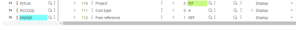 - Add a "FREREF" field to the lines in the grid. Select the GACCENTRYD table when prompted.