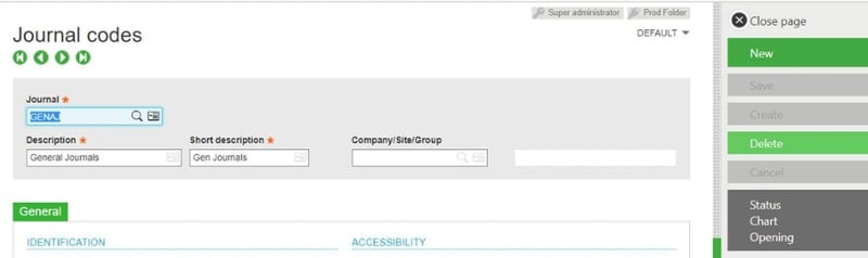 - Next, navigate to Common Data > G/L accounting tables > Journal Codes.