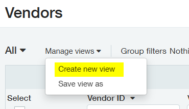 - From the vendor list screen, click the dropdown on the left to see a list of views, and select the view you just created.