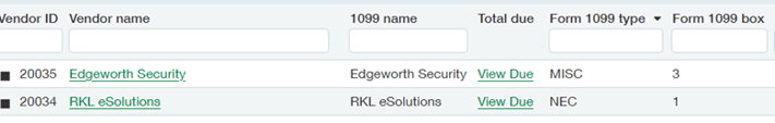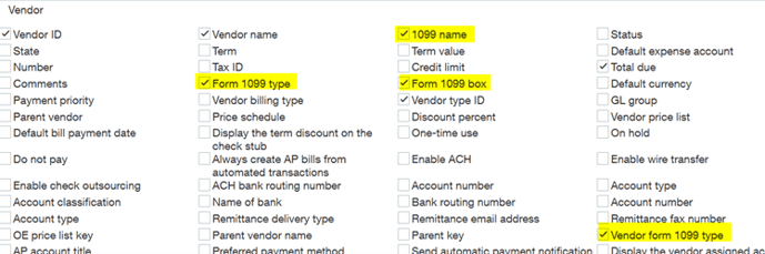 In this example, I want a list of vendors in Accounts Payable that includes only those subject to 1099. I also want to see the 1099 information, such as tax ID, etc. To accomplish this, I can do the following: