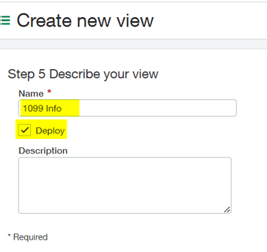 - Enter a name for the view, check the box next to “Deploy,” and then save.