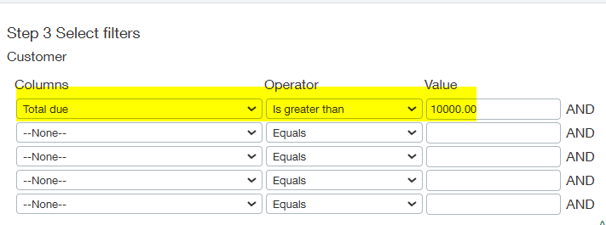 In this example, I want a customer listing for all customers with a balance due of more than $10,000 sorted by state.