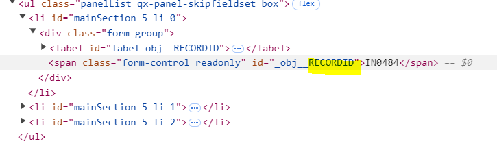 - A screen to your right will pop up. You will see the field name and the value. (In our case, it’s IN0484, and the field name is RECORDID.)
