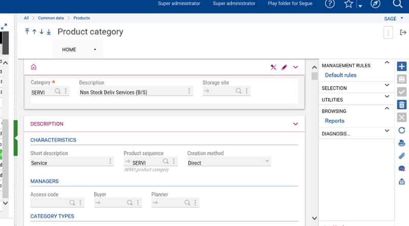 You will want to use products that have a ‘Service’ Product Category. A Service category is used for Subcontracting or Bought services. Since a simple service can be managed in Purchasing, a service can be both purchased and sold even if the category is not deliverable.