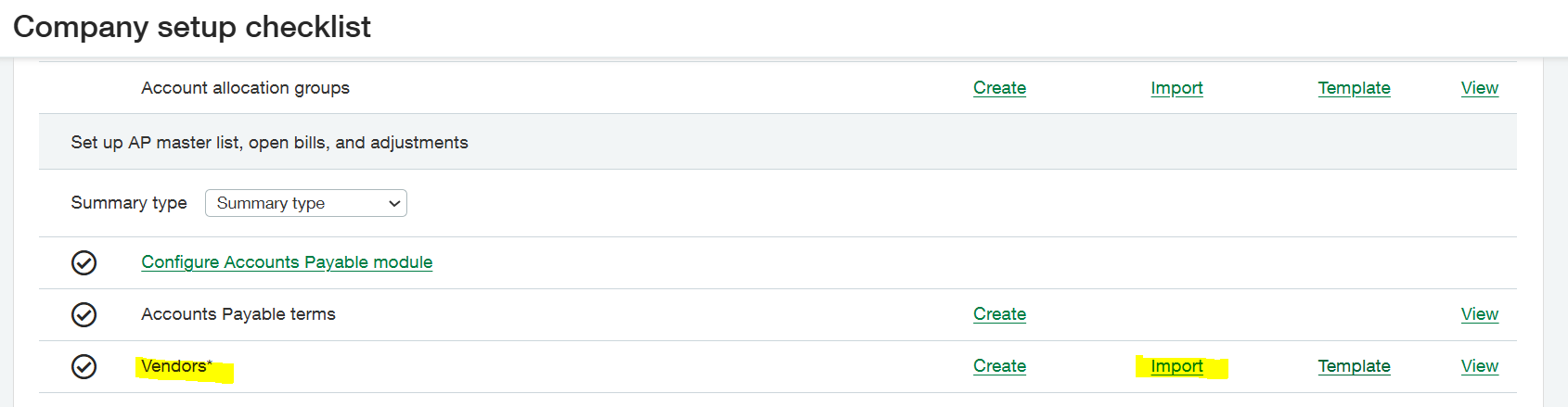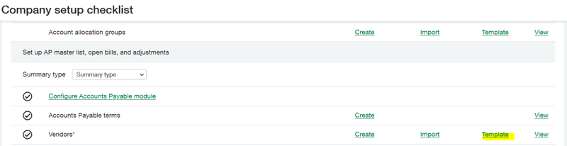 If you don’t have existing vendor IDs that you need to reference, you may want to load the vendor list using an Excel (.csv) template. If this is the case, navigate to Company > Setup Tab > Import Data > Scroll to the Vendors* option > Download a new Template.
