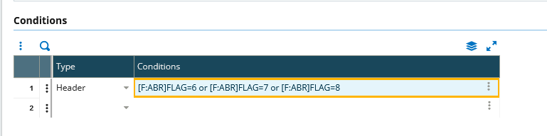 The formula for my condition is "[F:ABR]FLAG=6 or [F:ABR]FLAG=7 or [F:ABR]FLAG=8".