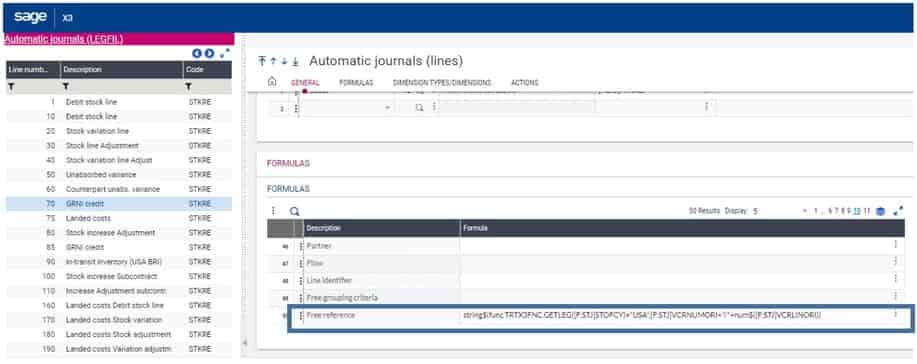 - string$(func TRTX3FNC.GETLEG([F:STJ]STOFCY)="USA",[F:STJ]VCRNUMORI+"/"+num$([F:STJ]VCRLINORI))VCRNUMORI represents the PO Number and VCRLINORI represents the PO Line.