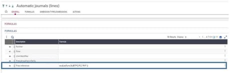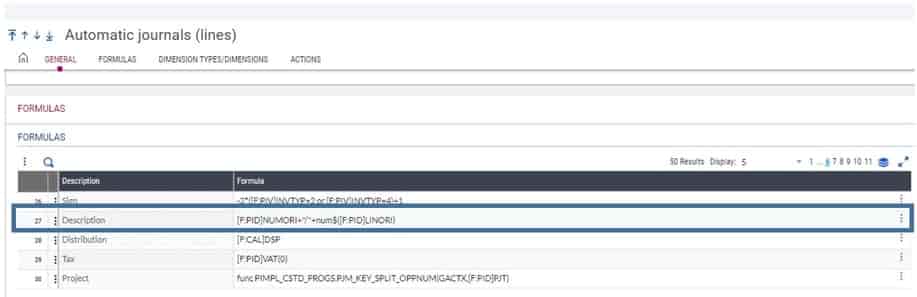 - The description field on the formulas tab of the automatic journal reflects the receipt number and receipt line in order to link it to the appropriate invoice.