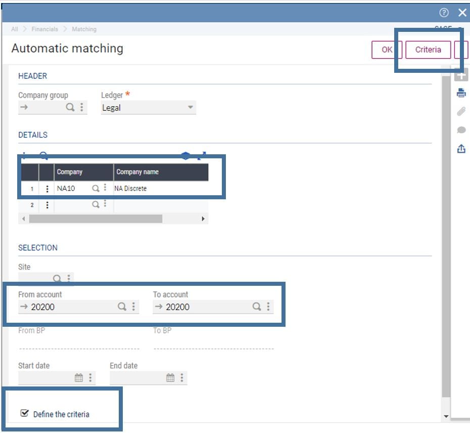 - Check Small letter matching box to allow partial matching for the case of partial invoicing.