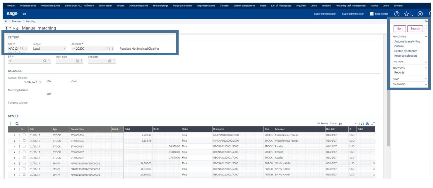 Sage ERP X3 includes a matching process that allows automatic linking of a purchase receipt or purchase order to the associated invoice. This can assist users with reconciling their RNI GL Account.