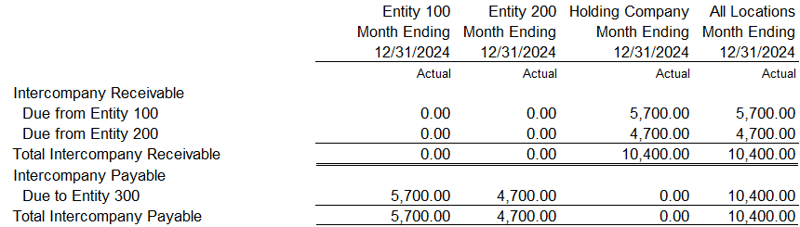 | E300 - Entity C | 19300 - E300 Inter-Entity Receivable | 29300 - E300 Inter-Entity Payable |