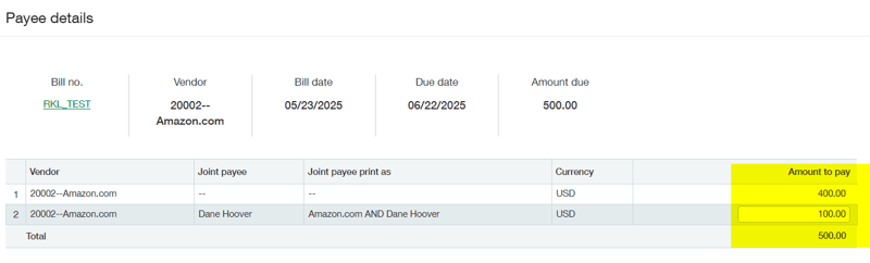 step 2: add joint payees to bills after saving them as drafts