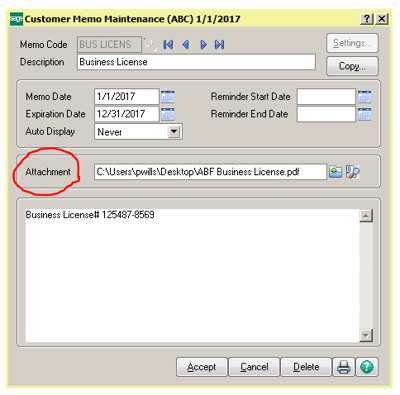 - In the "Attachment" field, enter the path and file name to attach a file to the memo. Click the "View Attachment" button to view the file in the appropriate program.
