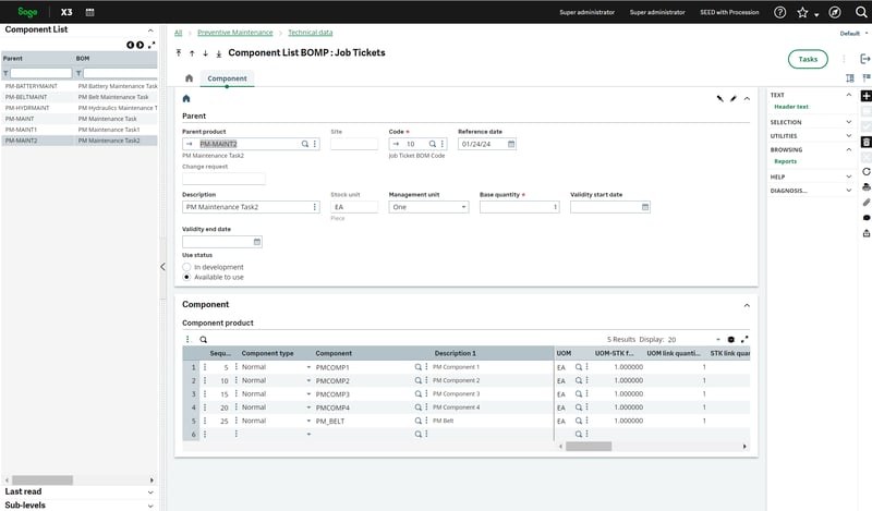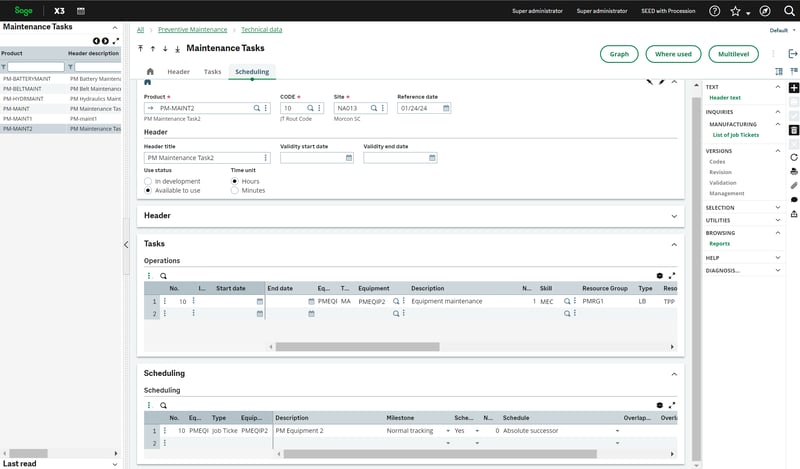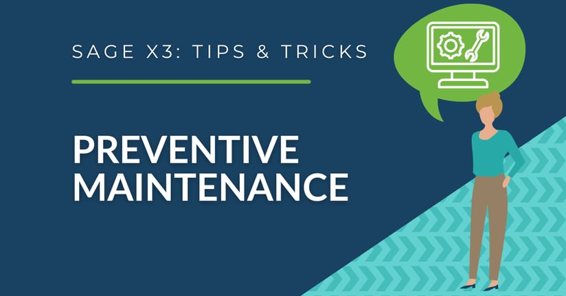 Today's companies need to utilize and maintain their equipment to get the best return on investment. One way to do that is by having a software solution that provides greater visibility into operations and maintenance. Sage X3 now provides the Preventive Maintenance solution to plan and process maintenance operations of physical assets in your organization. This solution will help reduce inefficiencies, improve productivity, optimize inventory levels, and reduce purchasing costs.