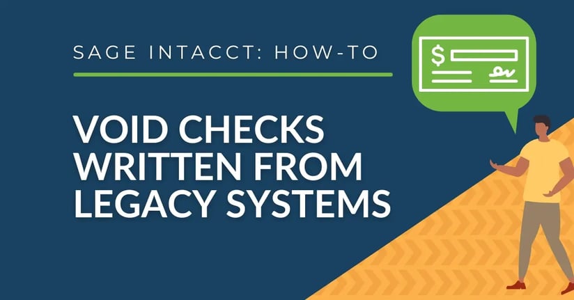 When converting or migrating to Sage Intacct, checks written in your legacy system that were not cleared through your bank reconciliation before you went live might need to be voided. We put together this scenario so that we can walk you through the steps on how to properly void the old check so that you can issue a new one.