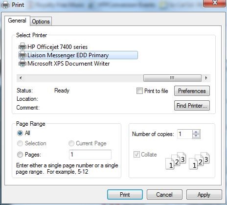 After the on-site job was completed, the technician notified the home office with the work that was done. The Work Order was then converted into an Invoice, the nature of the work performed was recorded and the invoice printed. Again, the in-house personnel who enters and then prints the Invoices simply needs to select Liaison Messenger EDD printer driver and print.