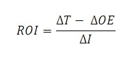 It reads: ROI is equal to (the change in Throughput less the change in Operating Expenses) divided by the change in Investment.