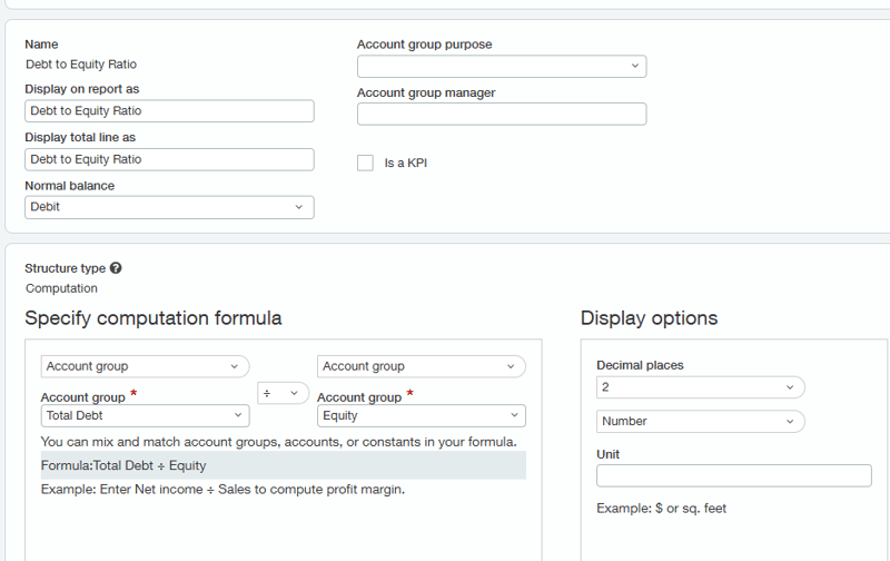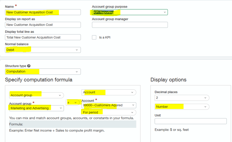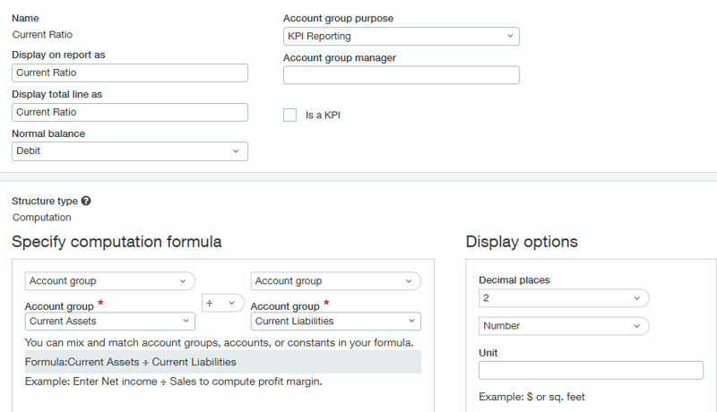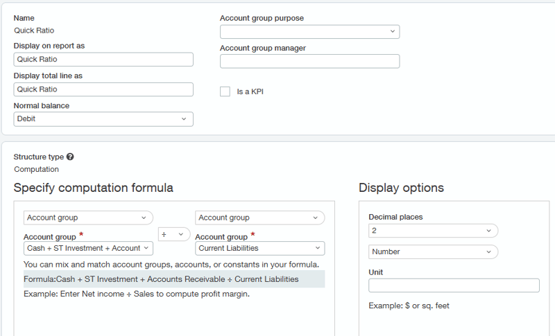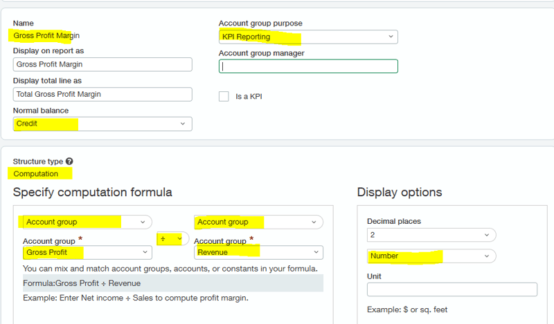 Sage Intacct also includes several built-in KPIs within the account groups. I have included a few frequently used ones below.