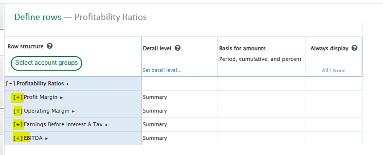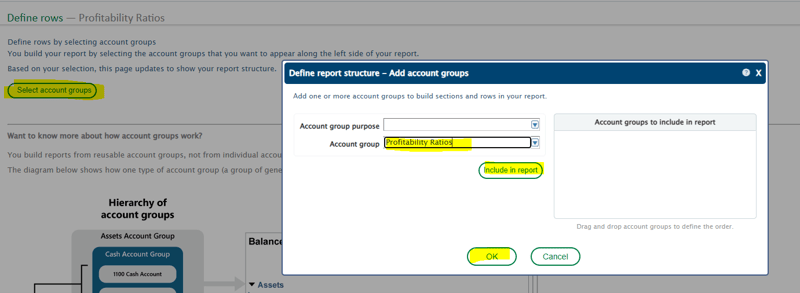 Step Two: Add your account groups to the rows