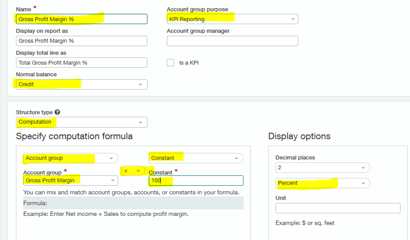 Step Two: Configure the percentage calculation under account groups