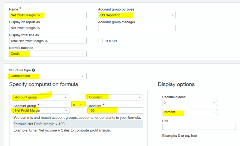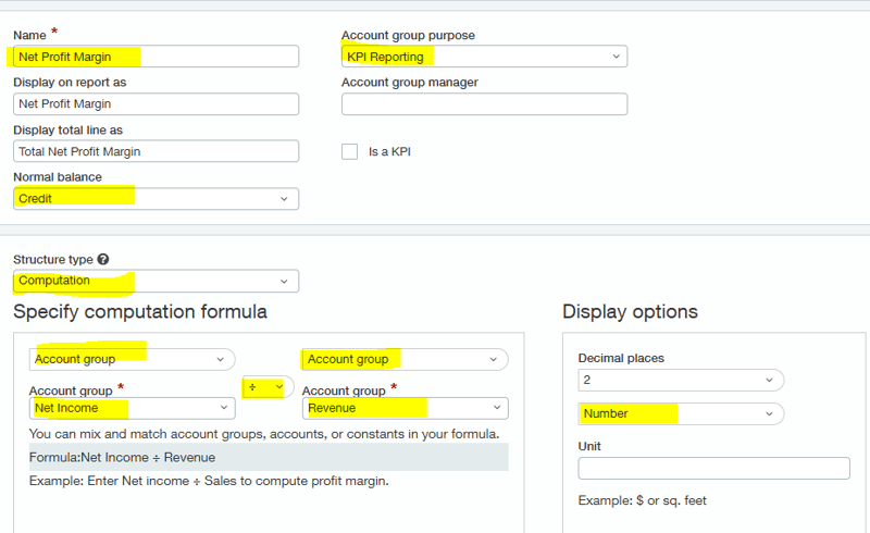 Step One: Create Net Profit Margin account group