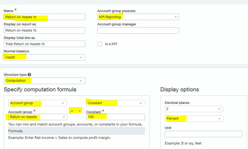 Step One: Create the Return on Assets account group