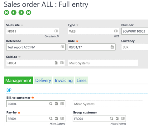 Sage X3 Sales Order Entry Screen